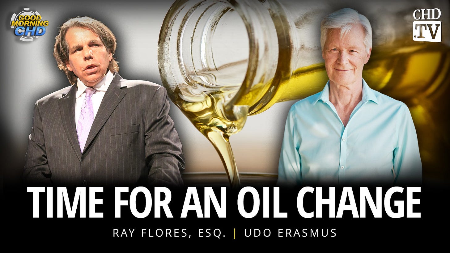 UDO ERASMUS INTERVIEWRay FloresMar 24, 20261Sharehttps://live.childrenshealthdefense.org/chd-tv/events/trending-news-segments/time-for-an-oil-change-udo-erasmus/I had a great 30-minute talk with the guru of healthy oils. Please enjoy and share far and wide. Thank you!https://udoerasmus.com/